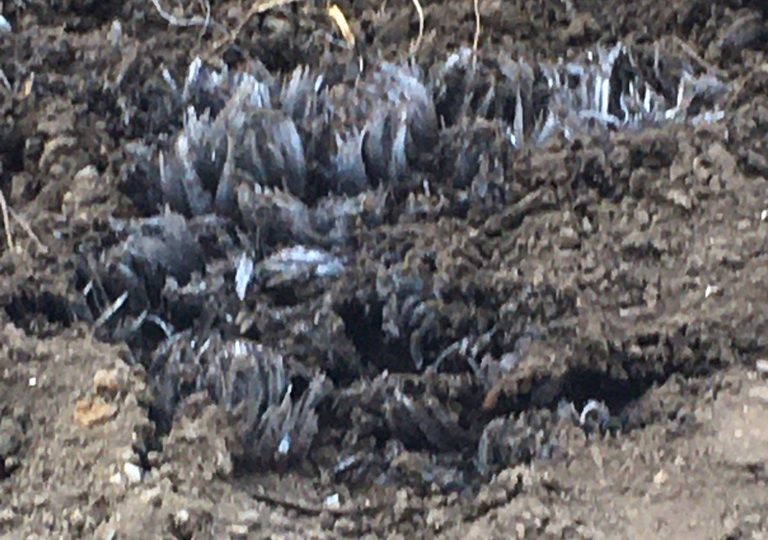 教室前に霜柱が、、